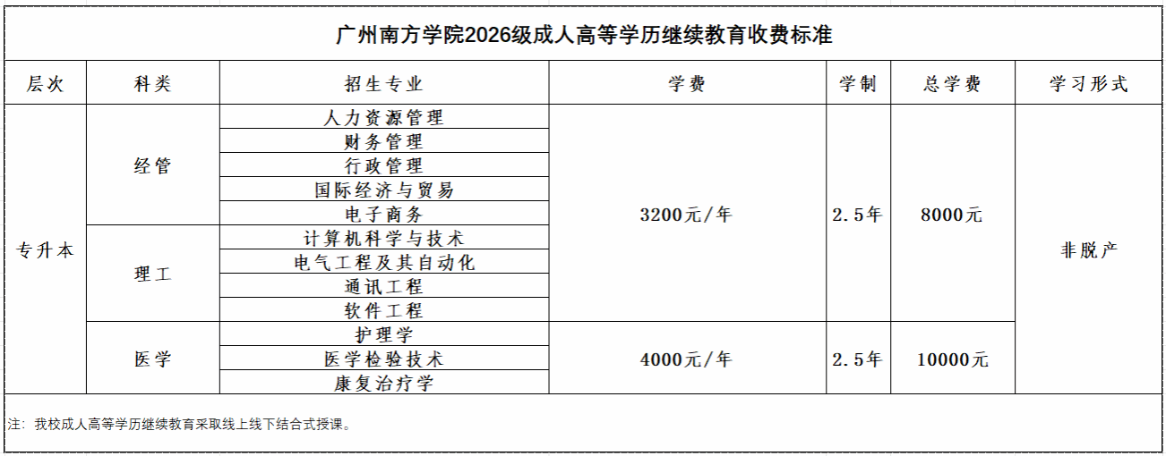 广州南方学院2026级成人高等学历继续教育收费标准.pdf